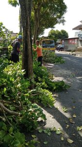 Unit Pelaksana Teknis Kebersihan dan Pertamanan (UPT KP) Dinas Lingkungan Hidup (DLH) Kabupaten Gunungkidul melakukan pemeliharaan pohon perindang di sepanjang